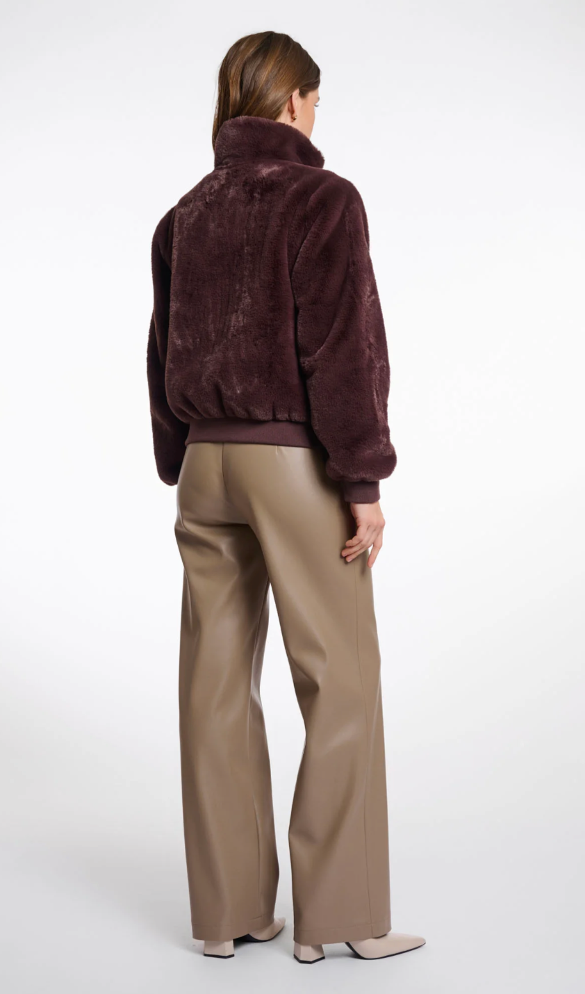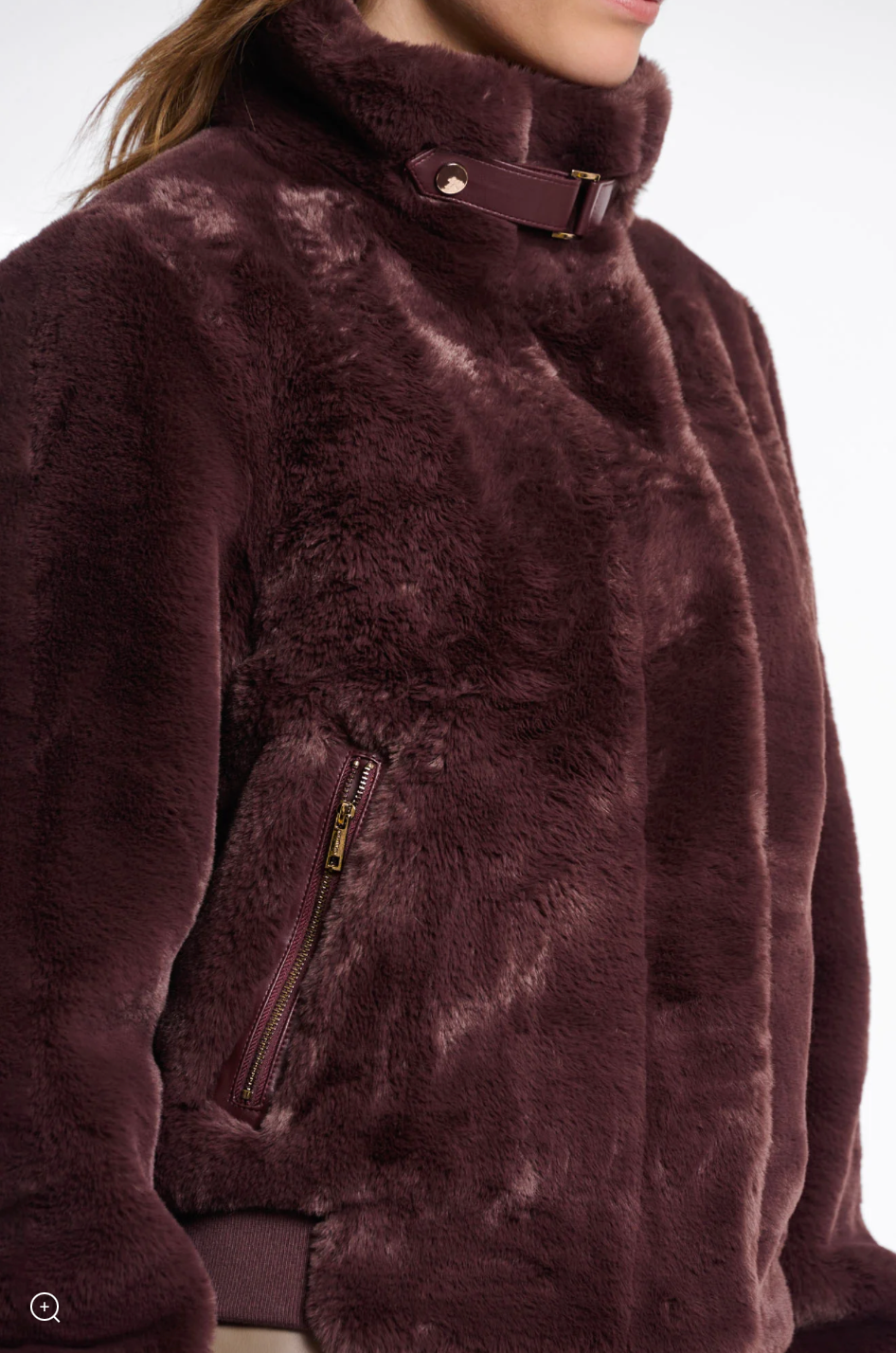 Giacca corta in pelliccia sintetica , chiusura con cerniera e collo alto con dettaglio a cinturino, tasche, polsini e orlo inferiore elasticizzati, le conferiscono una vestibilità aderente e più calda.